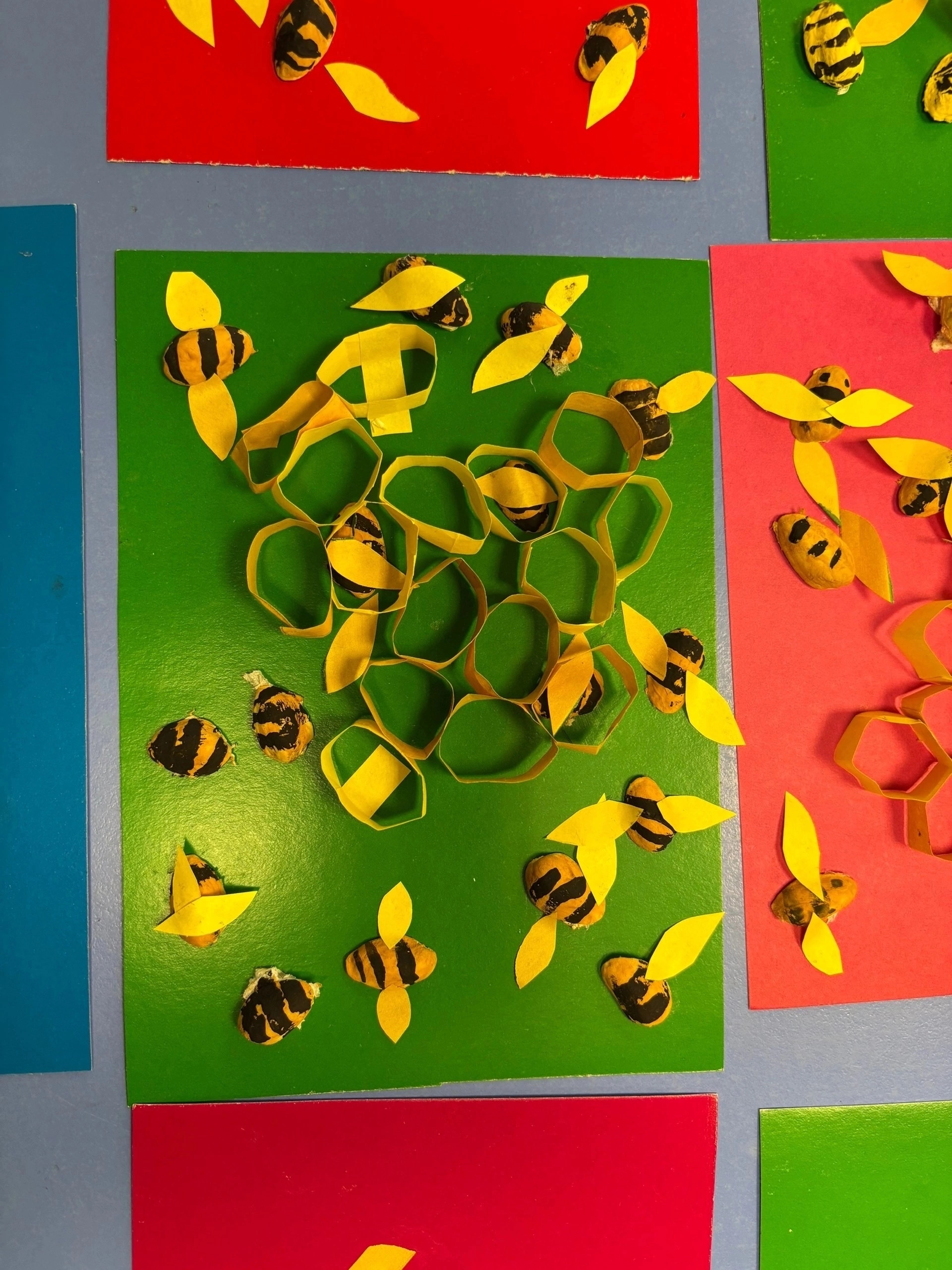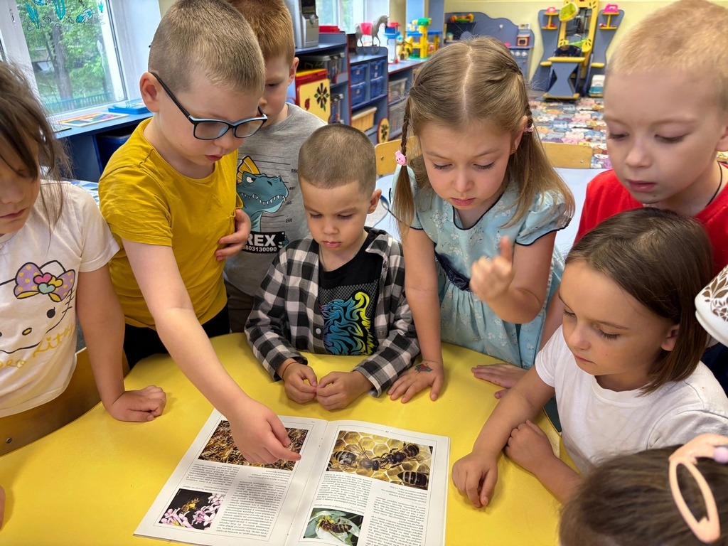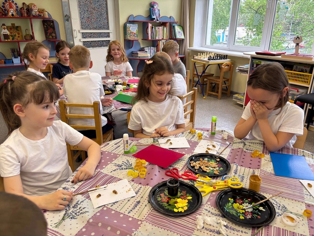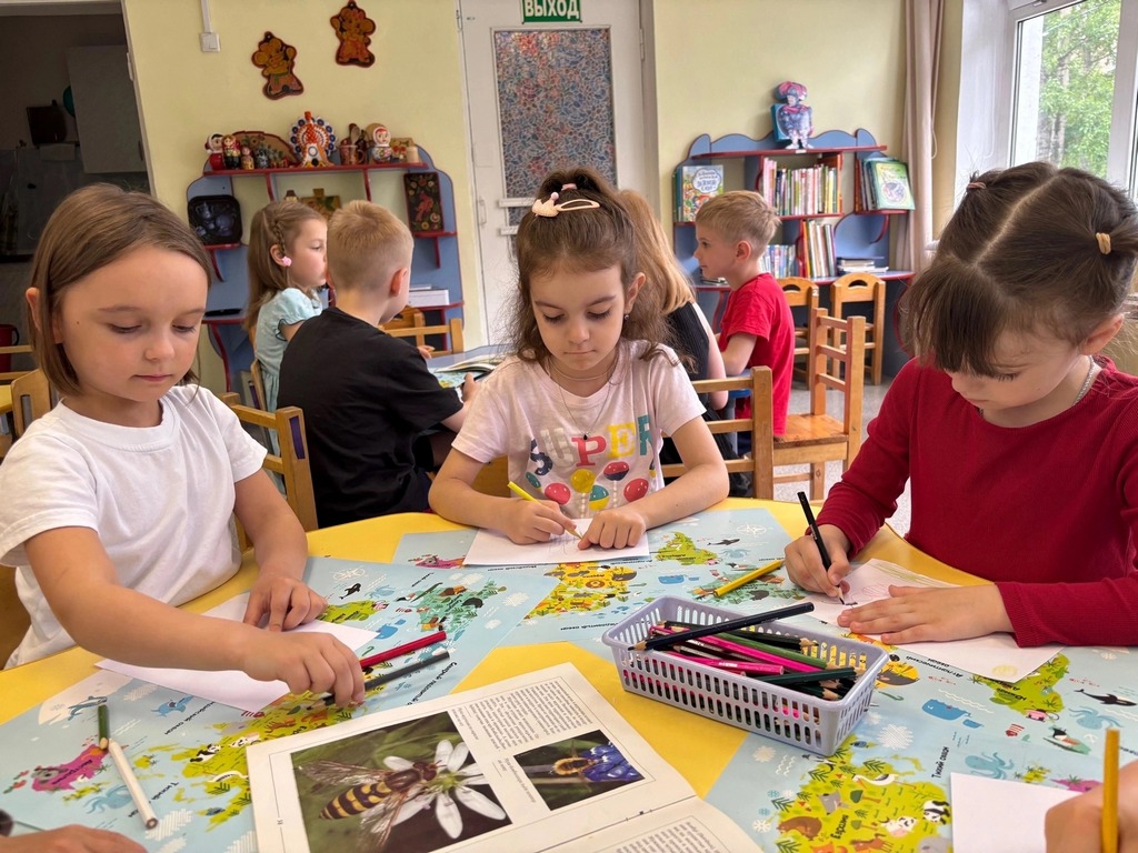 Ребята узнали о домашних и диких пчелах, их среде обитания. Активно участвовали в различных обсуждениях: чем питаются пчелы, как опыляют растения, собирают нектар и делают мед, зачем пчелы нужны человеку. В творческой мастерской дети с удовольствием нарисовали пчел и сделали поделки «Соты и пчелы».