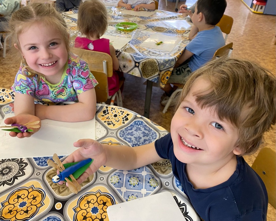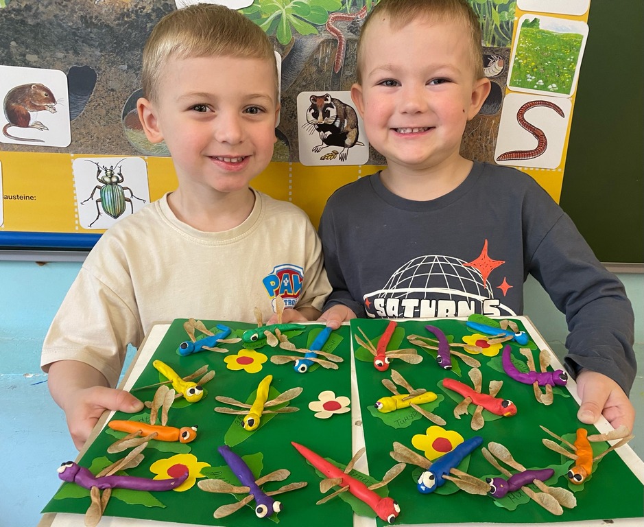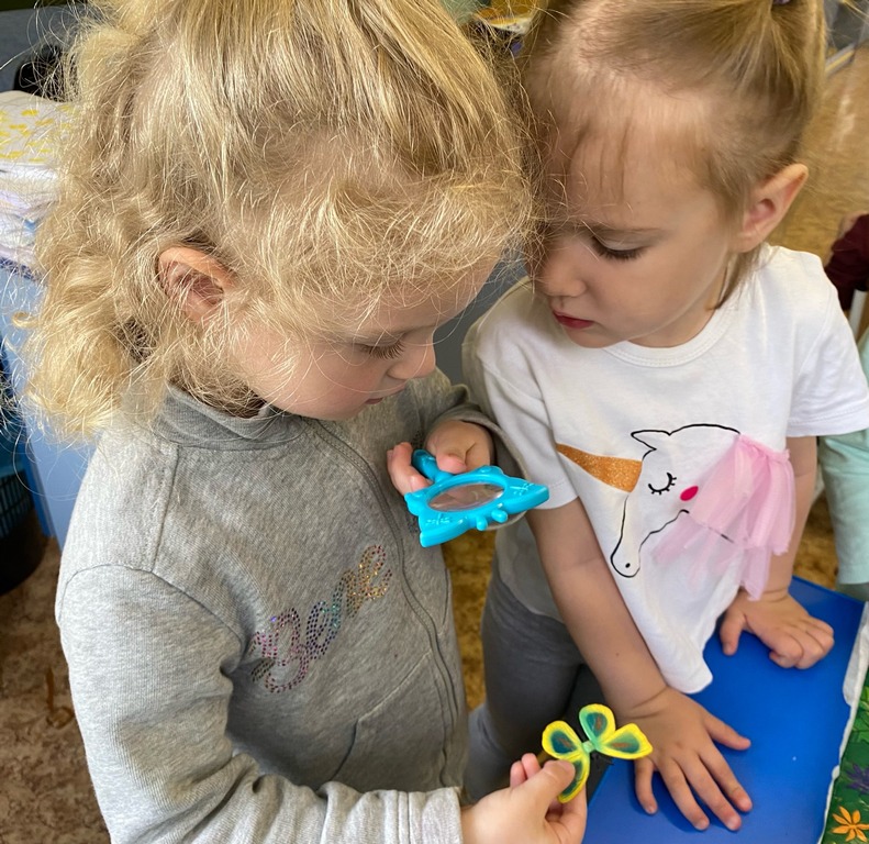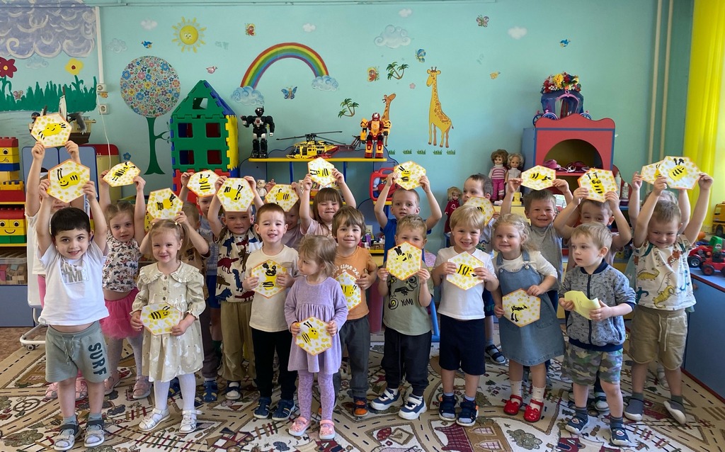 С интересом малыши наблюдали за насекомыми на прогулке.