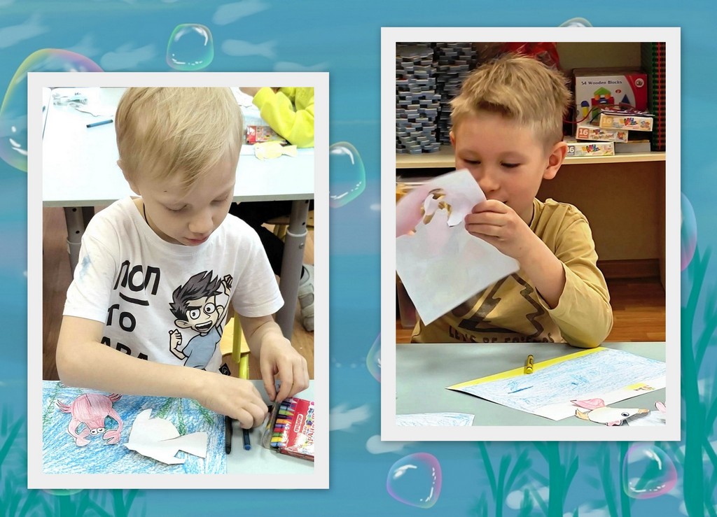 Ребята погрузились в мир ярких рыбок, забавных крабов и загадочных морских звёзд, а затем воплотили свои впечатления в творчестве.
