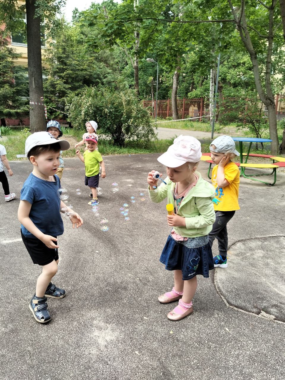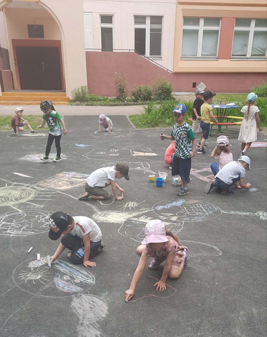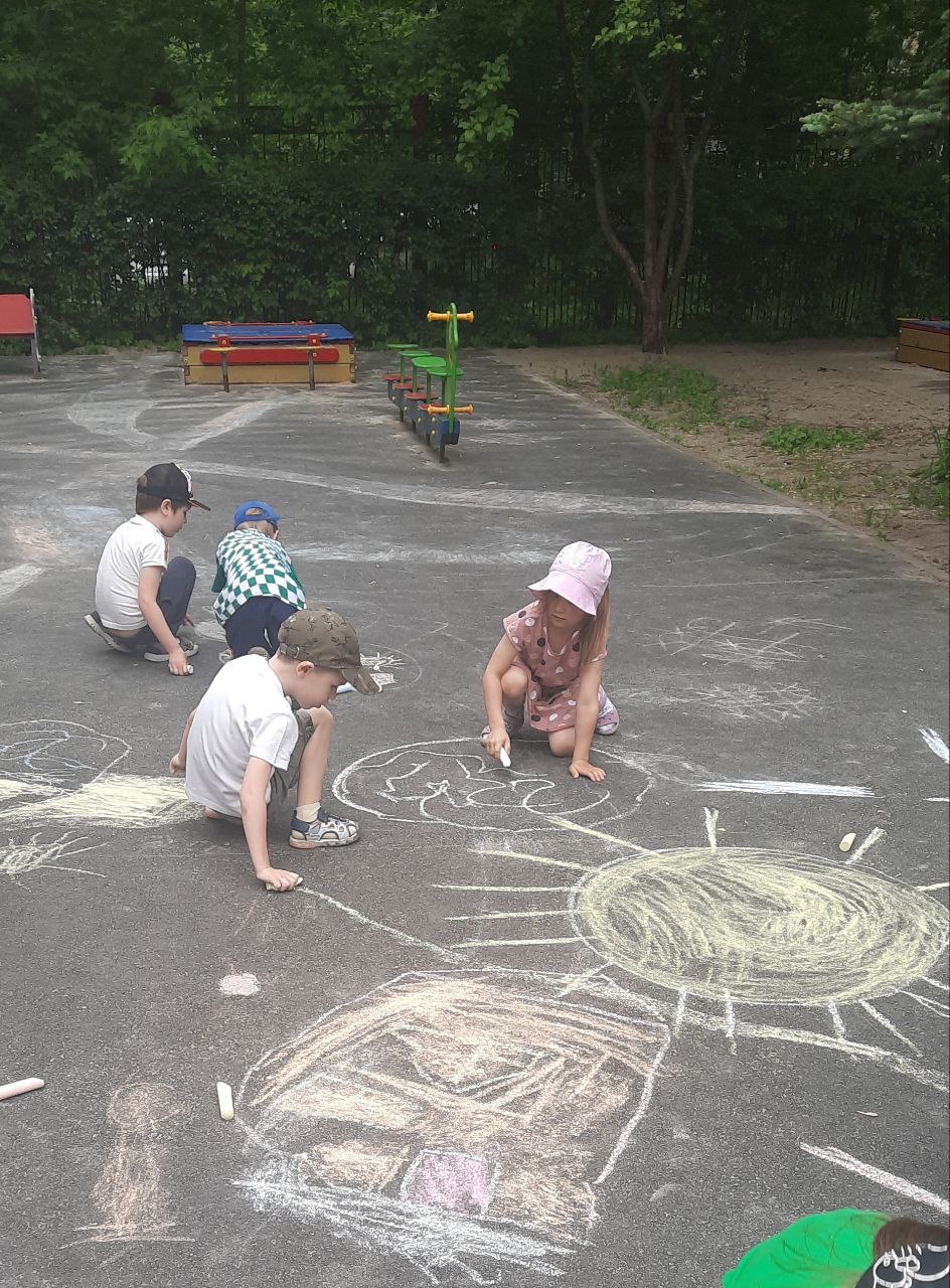 Мероприятие прошло с большим интересом. Дети играли в разные игры, с радостью участвовали в эстафетах и танцевали зажигательные танцы. День был весёлым, ярким и позитивным. Дети рисовали мелками на асфальте. В творческих мастерских ребята средней группы изобразили ромашки на лугу.