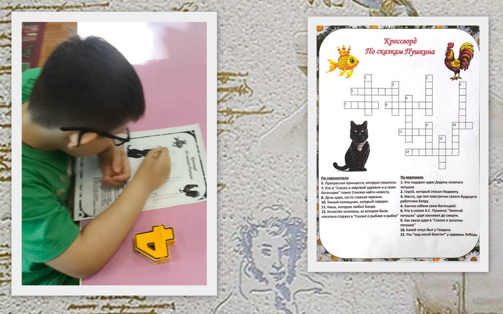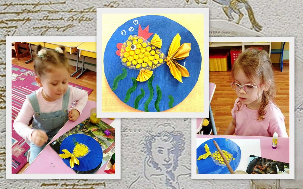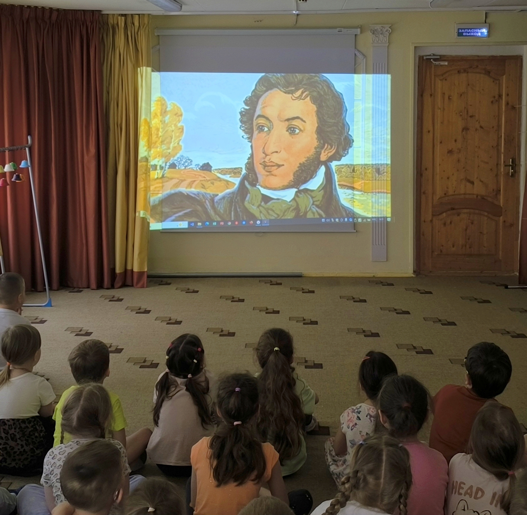 Воспитатели — Гурова Людмила Александровна, Тарасенко Наталия Николаевна, Можаева Татьяна Викторовна — познакомили ребят с биографией поэта, показали красочные книги и иллюстрации к его произведениям. Дошкольники с удовольствием вспомнили любимых героев — Золотую рыбку, Царевну-Лебедь, ученого Кота.