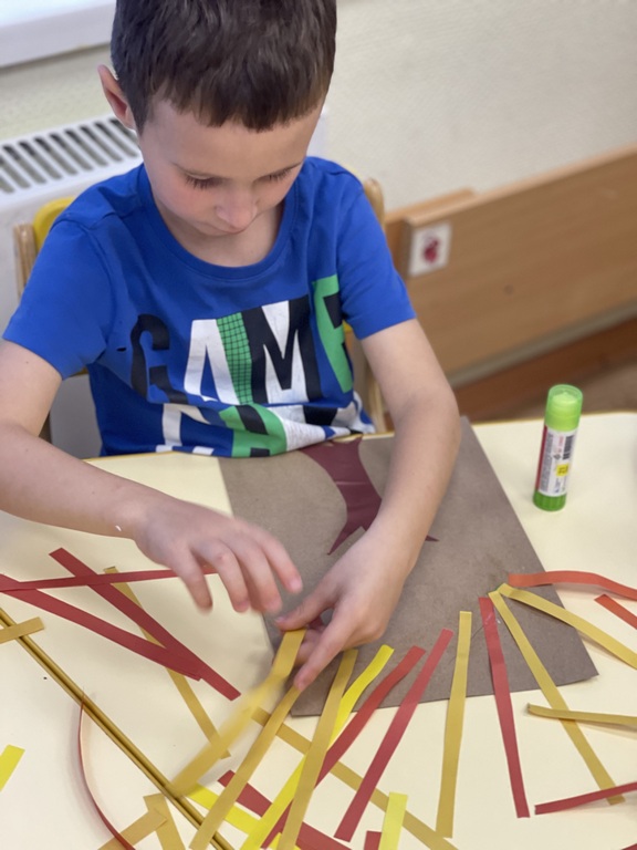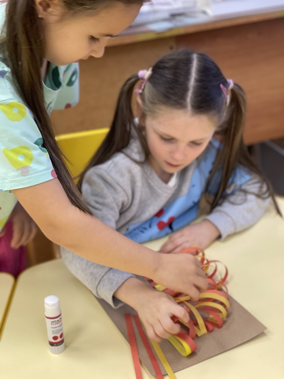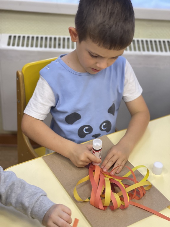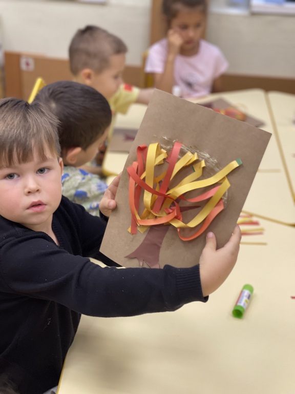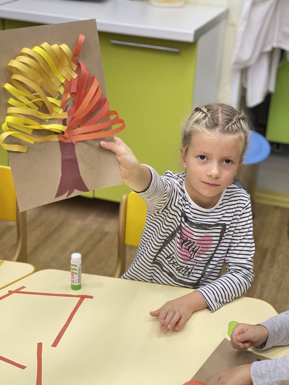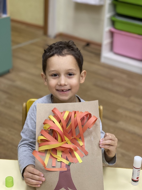 Сегодня воспитанники старшей группы корпуса 10 создавали осеннее дерево из цветной бумаги.