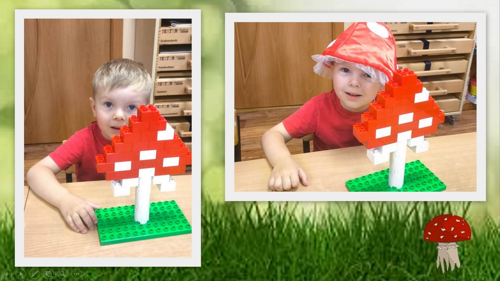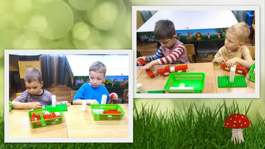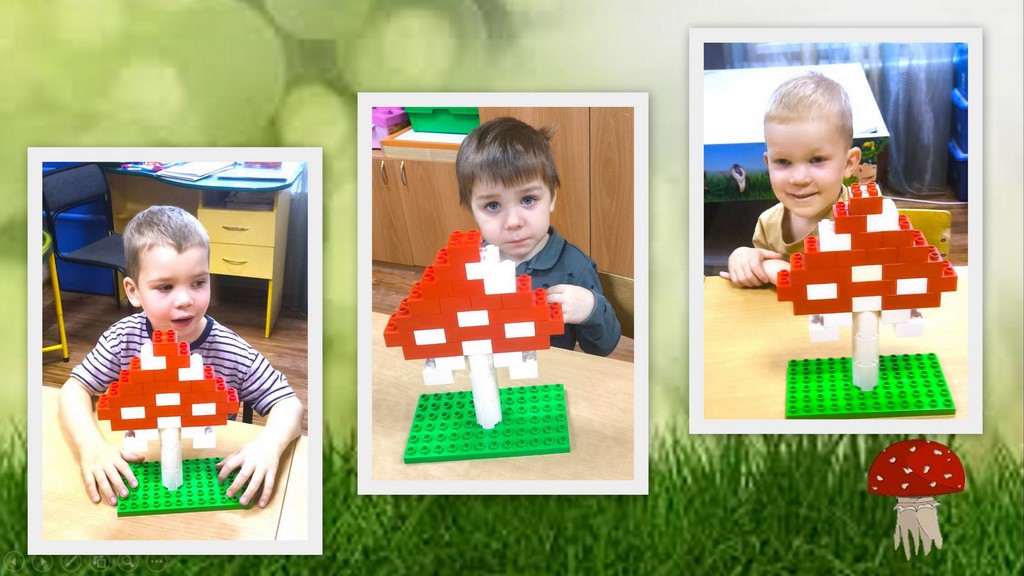 Ребята учатся не только собирать детали по схеме, но и развивать фантазию, придумывая целые грибные поля и лесные сценки.