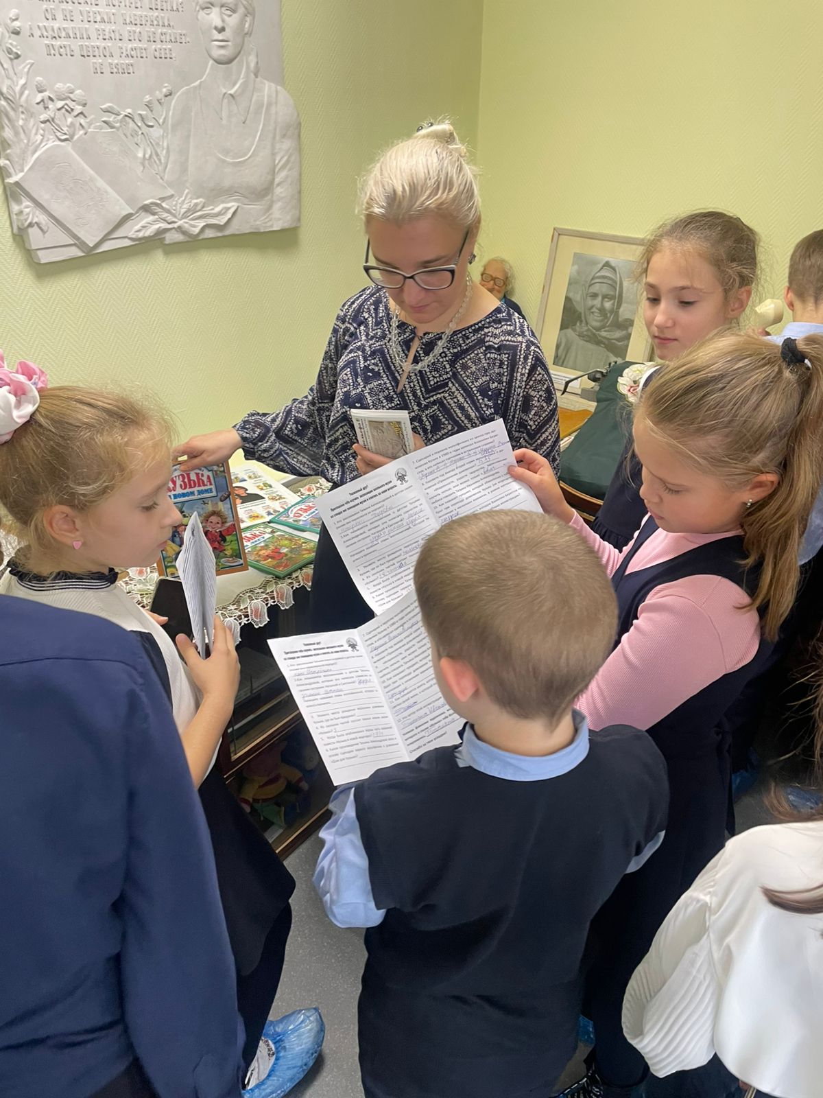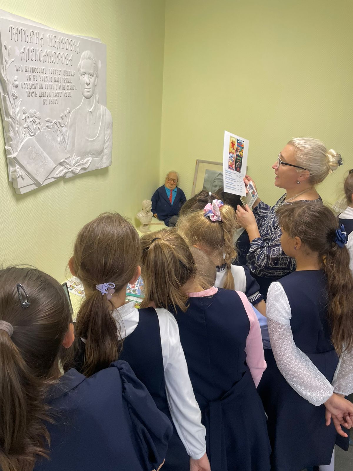 Тематическая экскурсия с викториной знакомила юных посетителей с биографией и творчеством Татьяны Ивановны Александровой и историей экранизации ее главного произведения. В собрании школьного музея хранится целая коллекция изданий сказки «Кузька», оформленных разными художниками-иллюстраторами, сувениров в виде главных героев. Можно сравнить и выбрать понравившийся образ, чтобы попробовать создать свой. Посетители могут увидеть фрагменты мультфильма, прочитать главы из воспоминаний писательницы «Друзья зимние, друзья летние» и познакомиться с другими ее произведениями, в том числе с её рисунками.