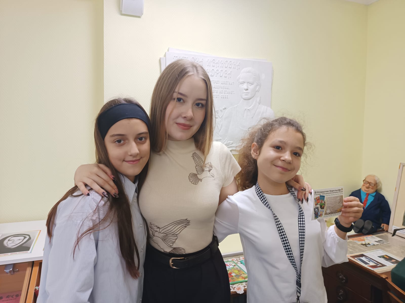 В день рождения литературного персонажа домовенка Кузьки автор барельефа рассказывала шестиклассникам о тонкостях технологии создания скульптурной композиции. Ребята могли задать интересующие их вопросы.
