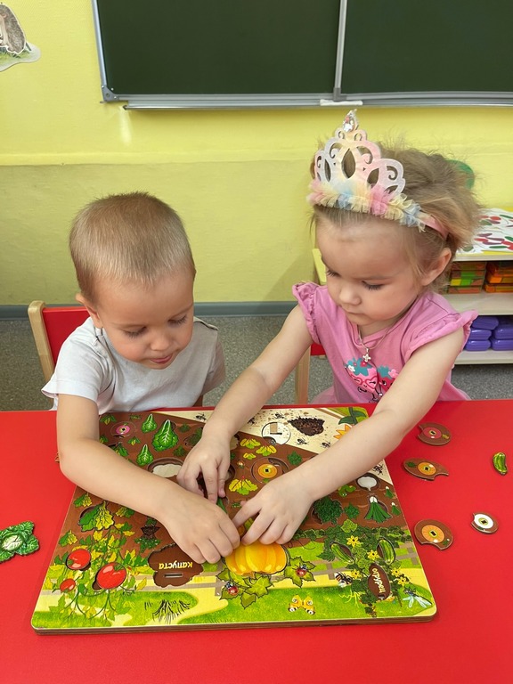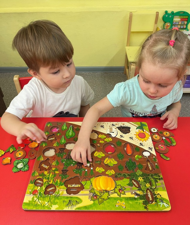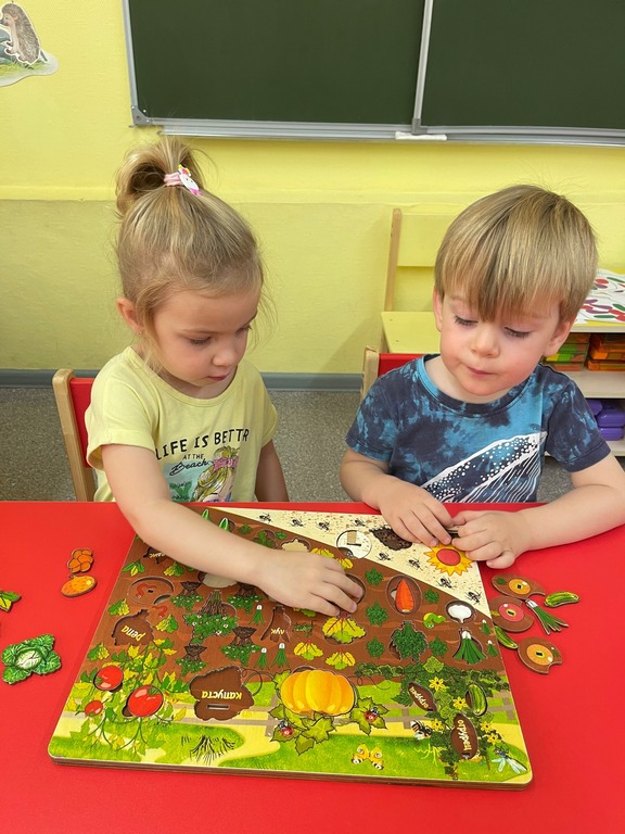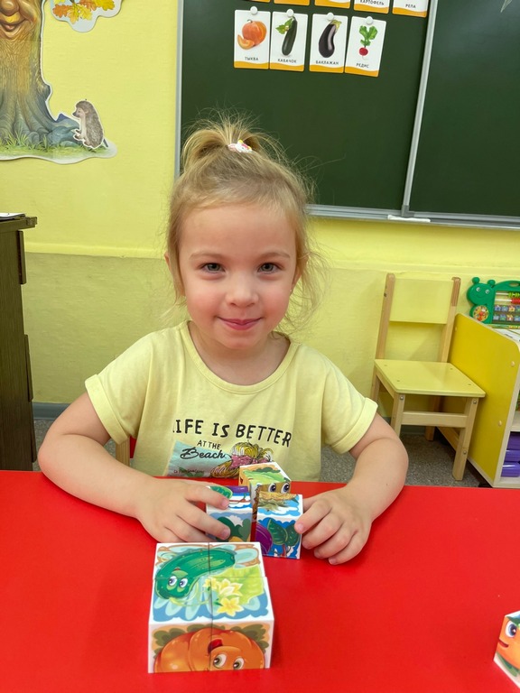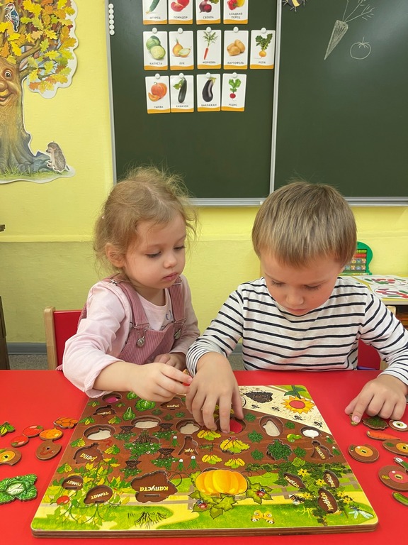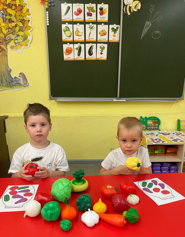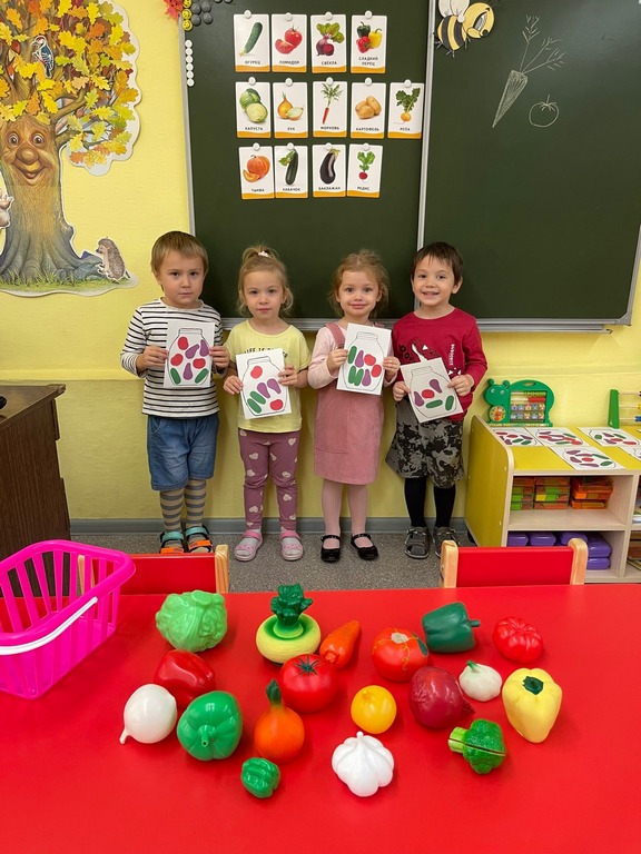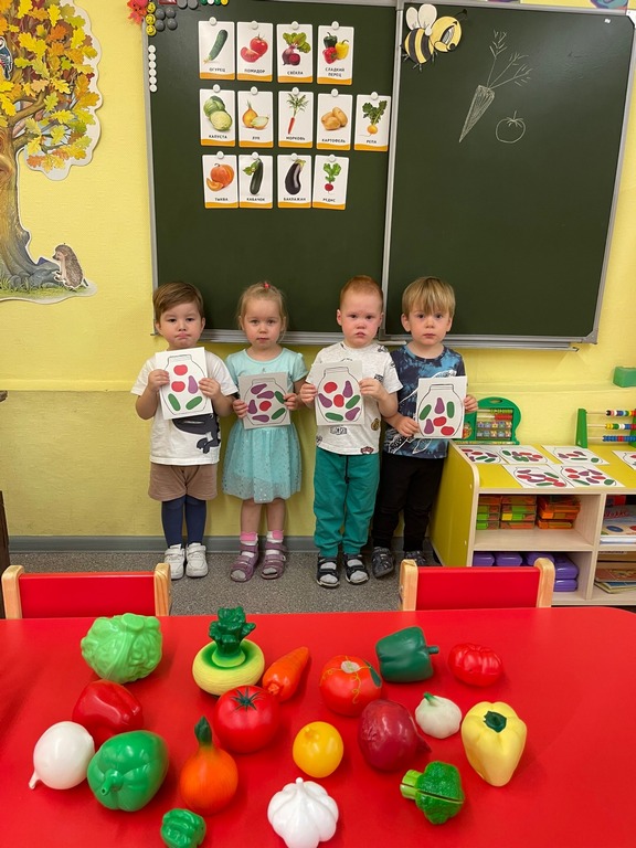 В ходе занятий ребята сформировали представления об овощах, как о витаминах полезных для здоровья, закрепили знания о характерных признаках овощей. Рассматривали иллюстрации и муляжи овощей, играли в настольные игры, отгадывали загадки, собирали пазлы, разучивали пальчиковую гимнастику: «Мы капусту рубим, рубим».