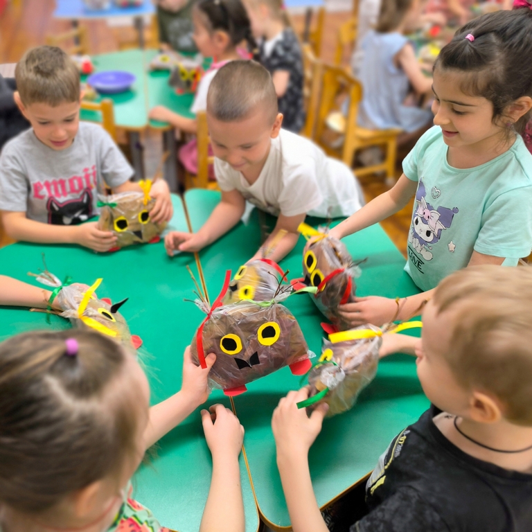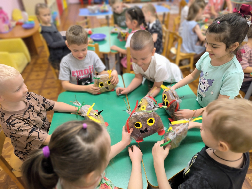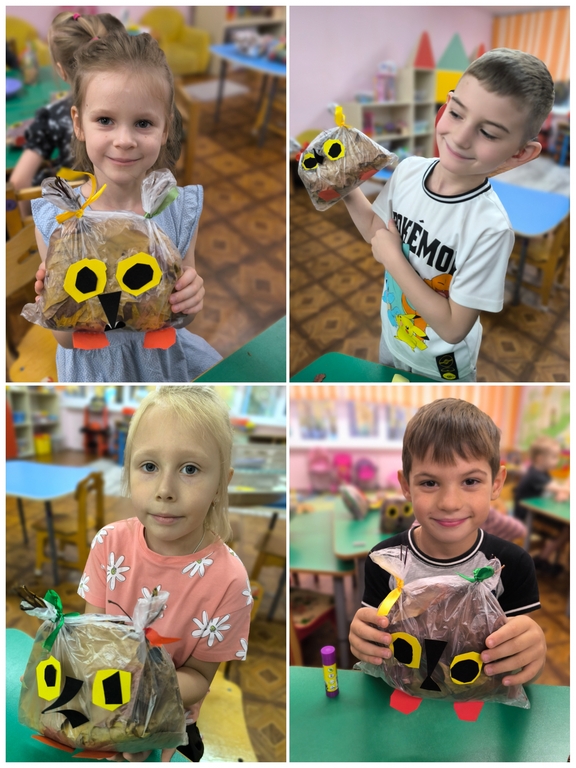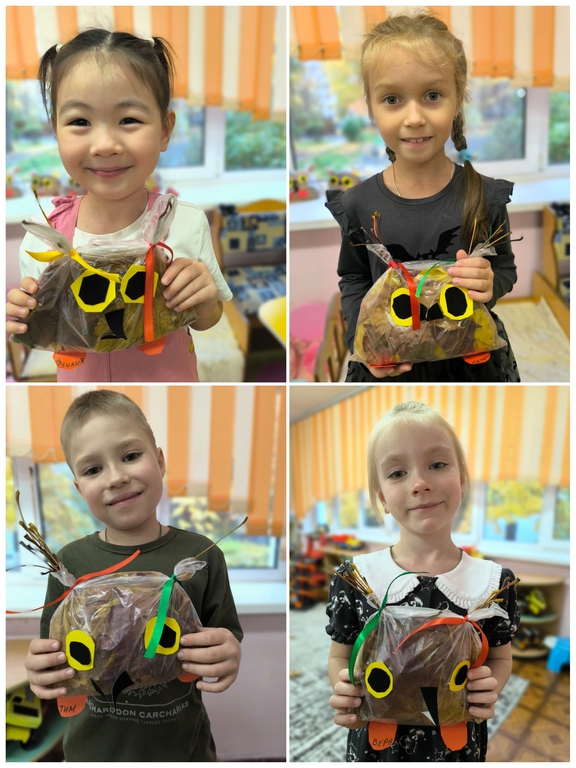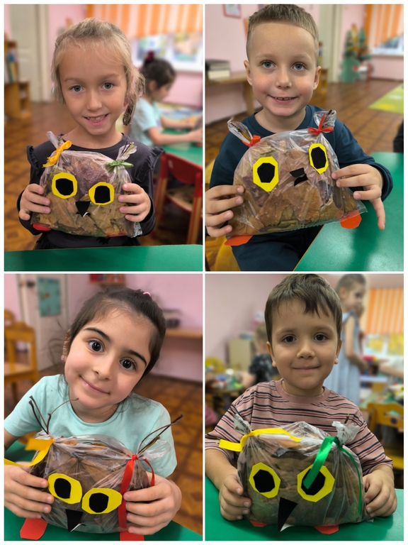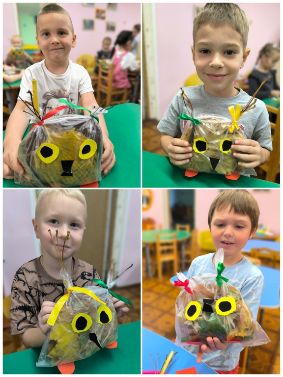 На прогулке дети подготовительной группы №24 собрали букеты разноцветных листьев и с восторгом обсуждали, что же можно сделать из этого богатства природы. И вот, под руководством воспитателей, у них родилась замечательная идея — создать поделку в виде очаровательной совы. Когда работа была завершена, перед ними предстал удивительный результат — яркая и забавная сова. Так осень стала не только чудесным временем для прогулок на свежем воздухе, но и источником вдохновения для творчества