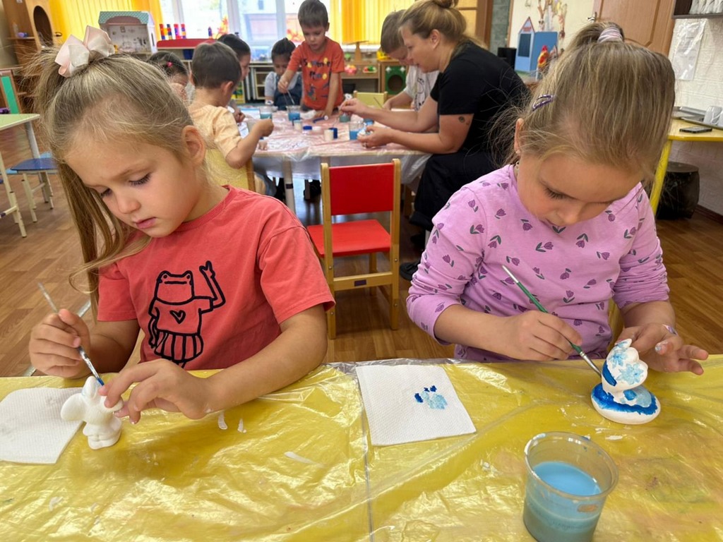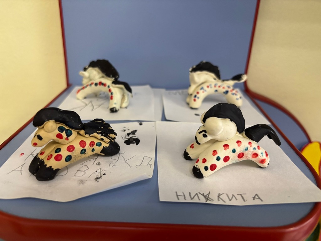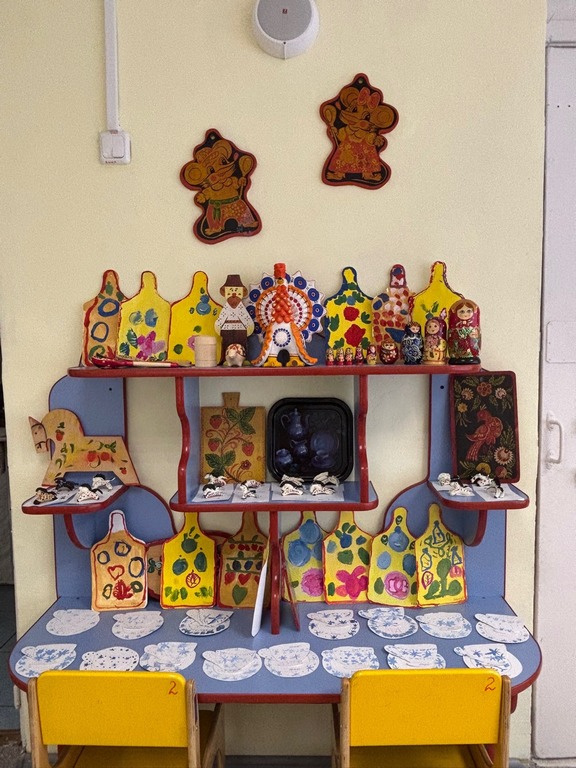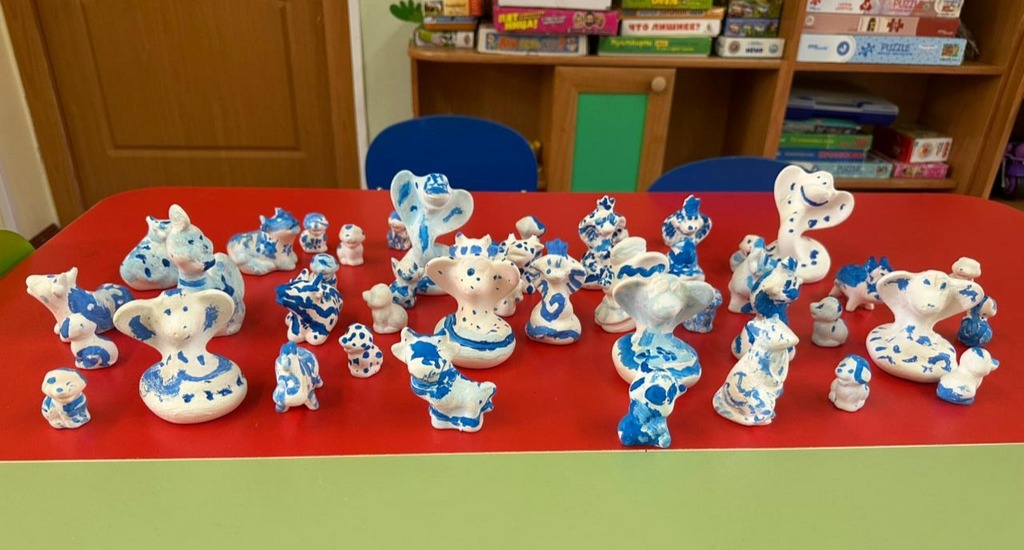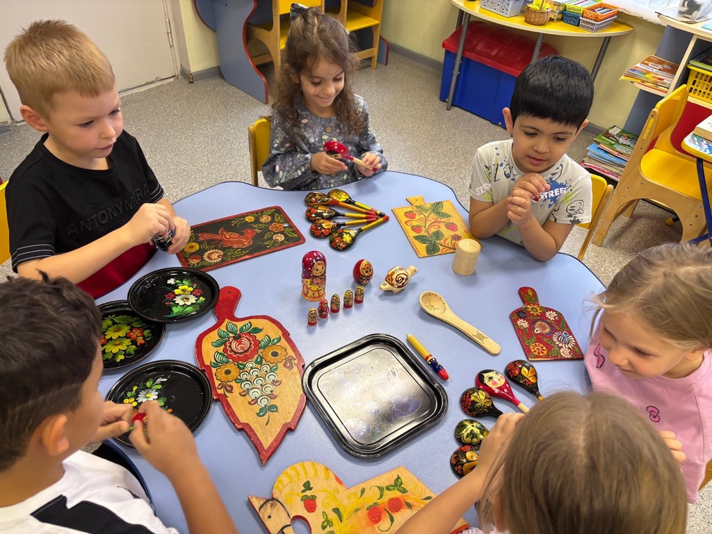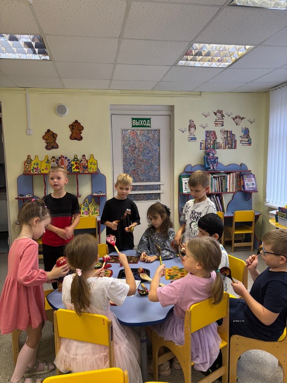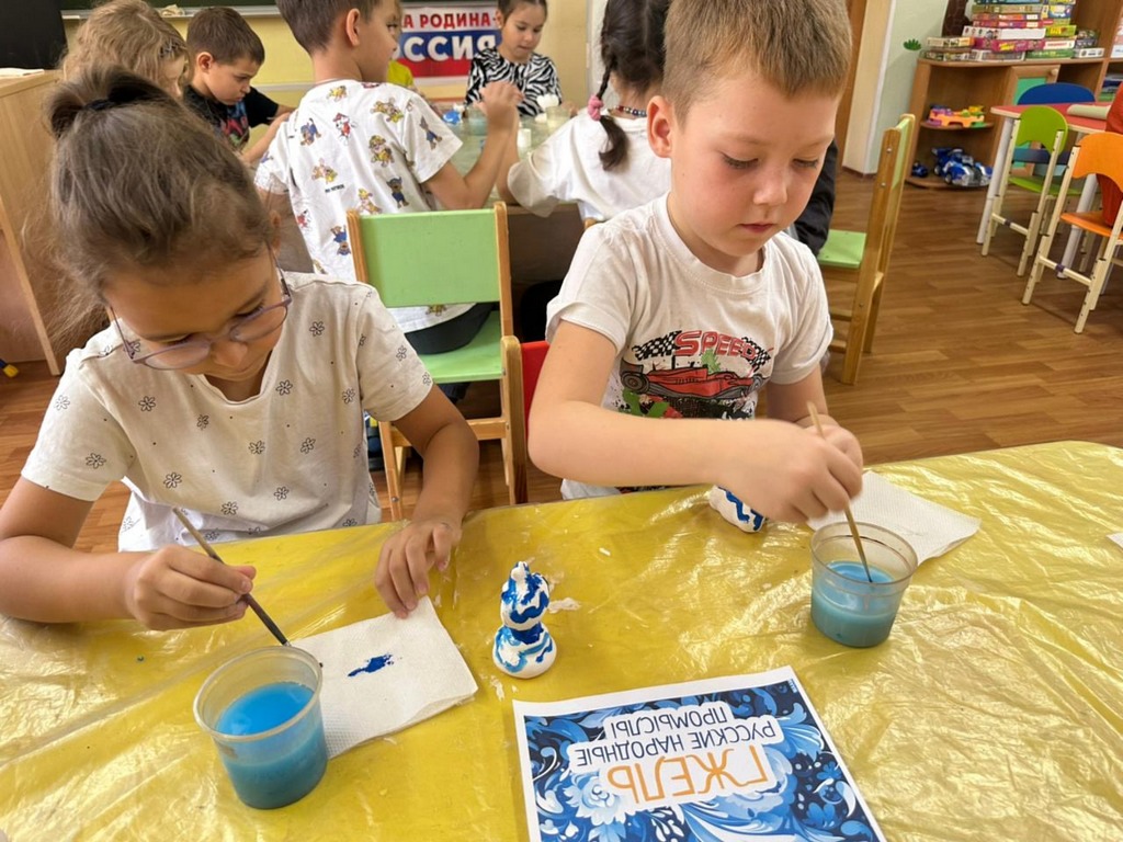 Ребята с понедельника по пятницу путешествовал по городам России откуда пришли эти промыслы. А в творческой мастерской закрепляли знания и попробовали себя в роли мастеров.