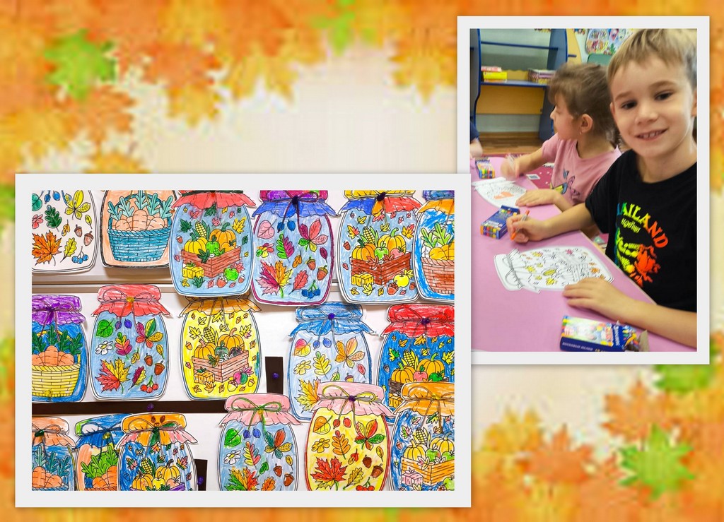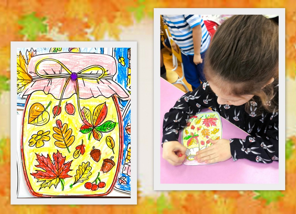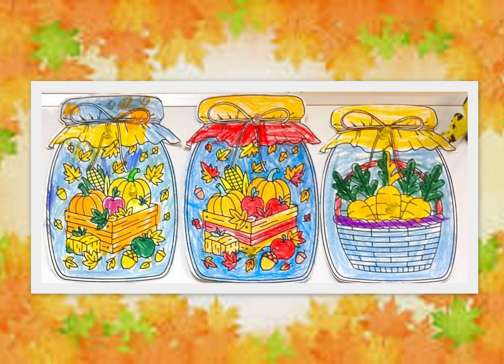 Яркие листья, вкусные тыквы, алые ягоды шиповника и причудливые жёлуди — всё это великолепие дети бережно "собрали" в банки, раскрасив дары природы яркими красками.