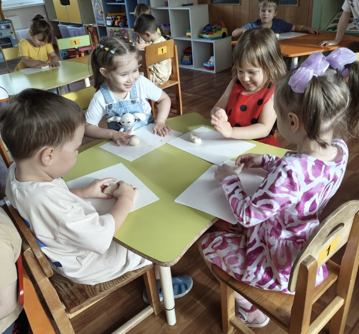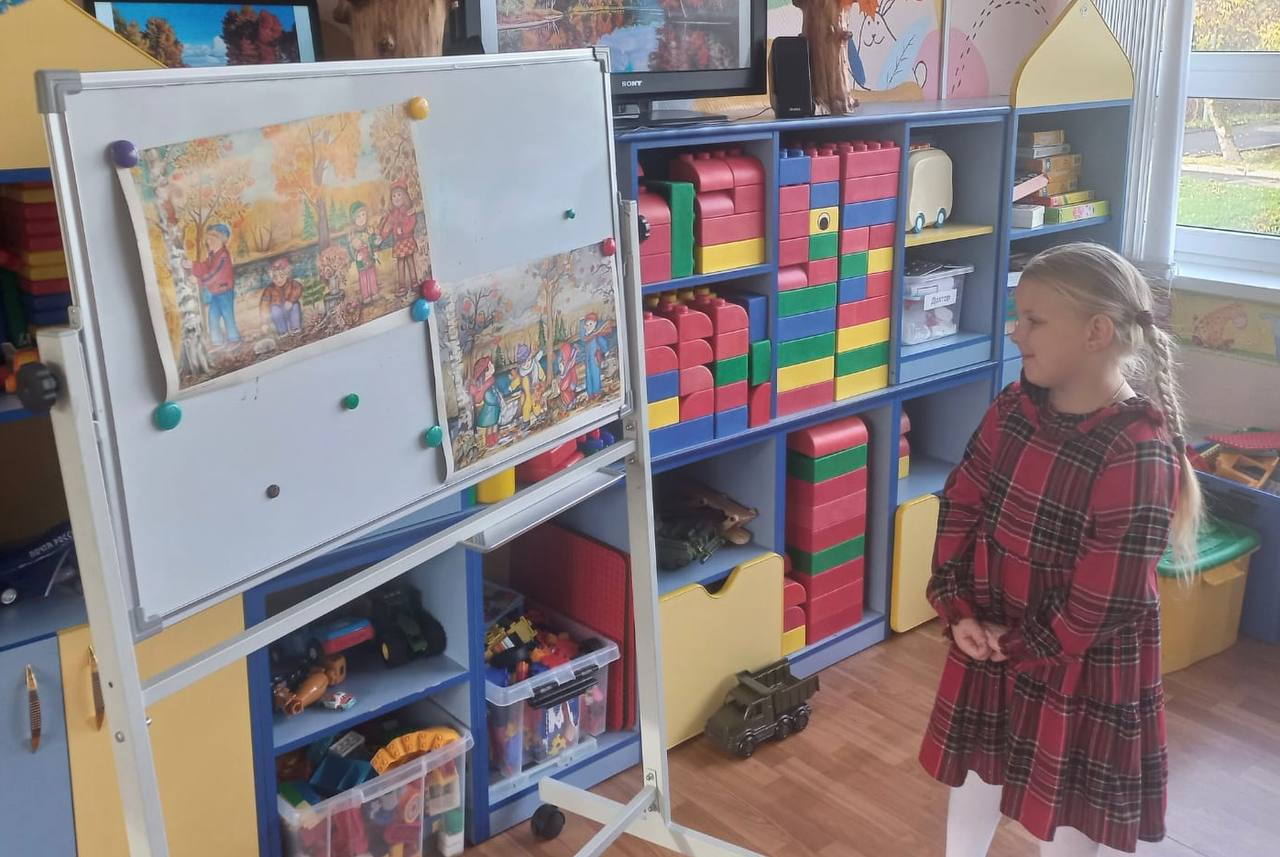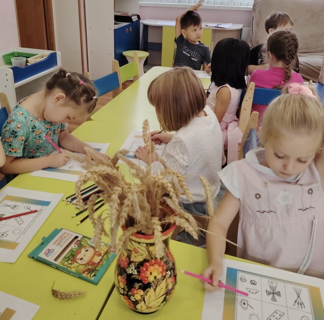 В то время, когда младшие дошколята знакомились с признаками осени как времени года и любовались красотой осени, старшие дошколята изучили историю одного зернышка. Ребята знают, сколько труда затрачивается, прежде чем хлеб попадает к нам на стол.