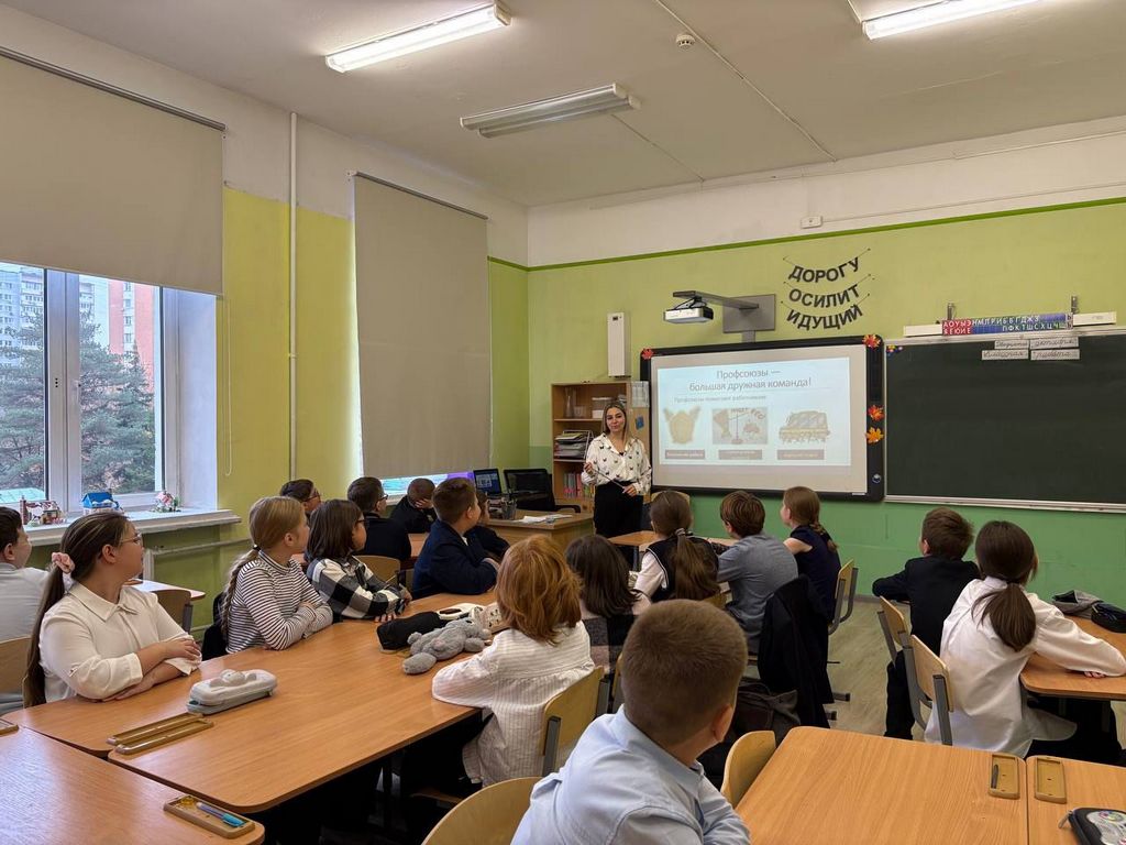 Во 2 «Л» классе с руководителем класса Романенковой Натальей Николаевной учащиеся совершили открытия по теме «Что такое профсоюз?», а ребята 4 «Н» класса под руководством Лукашовой Дарьи Вадимовны погрузились в тему «Российские профсоюзы: история и современность».