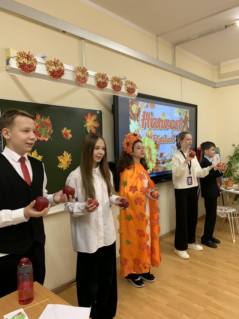 Дети изготовили флажки с изображением яблока, символа энергии и здоровья. В связи с этим ведущие организовали командные игровые состязания с яблоками. На уроке учащиеся обменялись кулинарными рецептами, приготовленными в художественном исполнении. Фестиваль завершился чаепитием с яблочным пирогом, приготовленный шестиклассниками с помощью мамы.