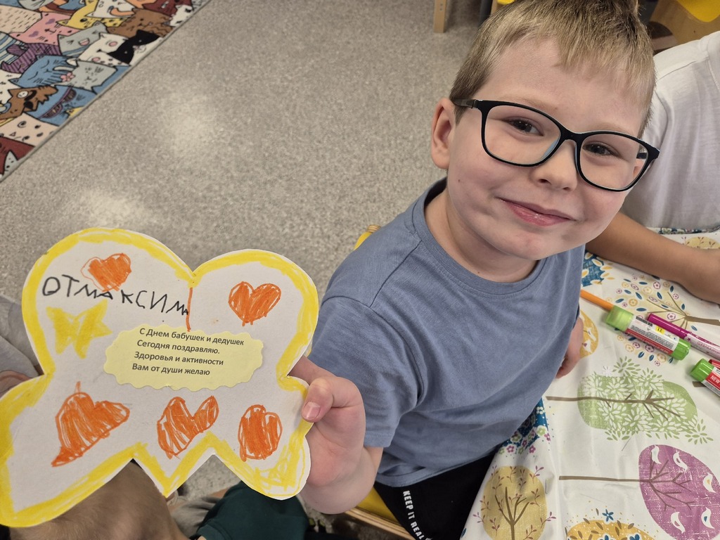 К этому чудесному празднику ребята из группы 32 корпуса 14 прочитали рассказ С. Нуруллиной "Бабушка рядышком с дедушкой", рассказали трогательные истории о своих любимых бабушках и дедушках подготовили им поздравительные открытки, сделанные своими руками.